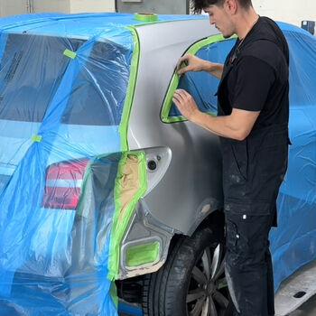 Es sichert für den Benutzer ein lebensnahes Erlebnis. Es wird eine echte Lackierpistole verwendet, während alles andere in Virtual Reality passiert. Man braucht keine Lackierkabine!