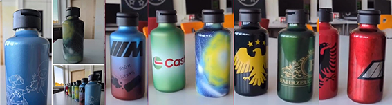 Im Rahmen der Lernsituation „Trinkflasche 360° – Technik, Design, Planung“ gestalteten die Fahrzeuglackierer*innen der BBS Winsen (Luhe) Edelstahl-Trinkflaschen – fachgerecht und kreativ.