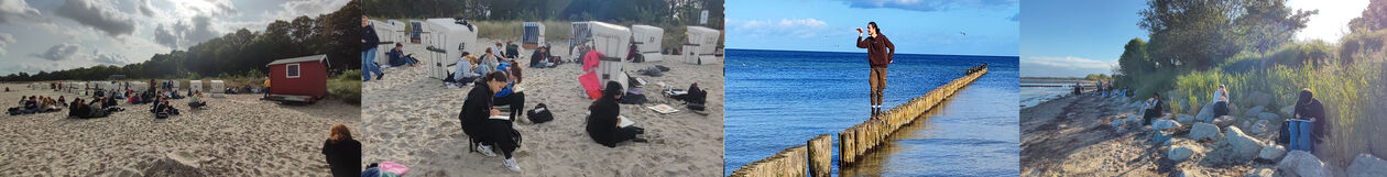 Workshops wurden an verschiedenen Küstenspots zu ganz unterschiedlichen Techniken des Zeichnens und Malens entlang der Küste um Boltenhagen abgehalten. Die natürliche Umgebung diente als lebendiges Atelier die Schülerinnen und Schüler zu fantasievollen Arbeiten inspirierte. Hier, fernab vom Klassenzimmer, verschmolzen die Grenzen zwischen Lernen und Erleben, während die Schüler*innen ihre gestalterischen Fähigkeiten eiterentwickelten.