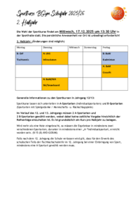 • Für die Sportkurse werden Kursbeschreibungen verfasst, in denen die „aufgebauten“ (neu zu erwerbenden) Kompetenzen aufgeführt werden. Die Kursbeschreibungen werden veröffentlicht (Aushang, Schulinternetseite).