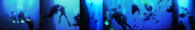 inmitten einer Kluft, einer kleinen Schlucht, die sich zum Meer hin öffnete, konnten wir bereits in einer Tiefe von 10 Metern