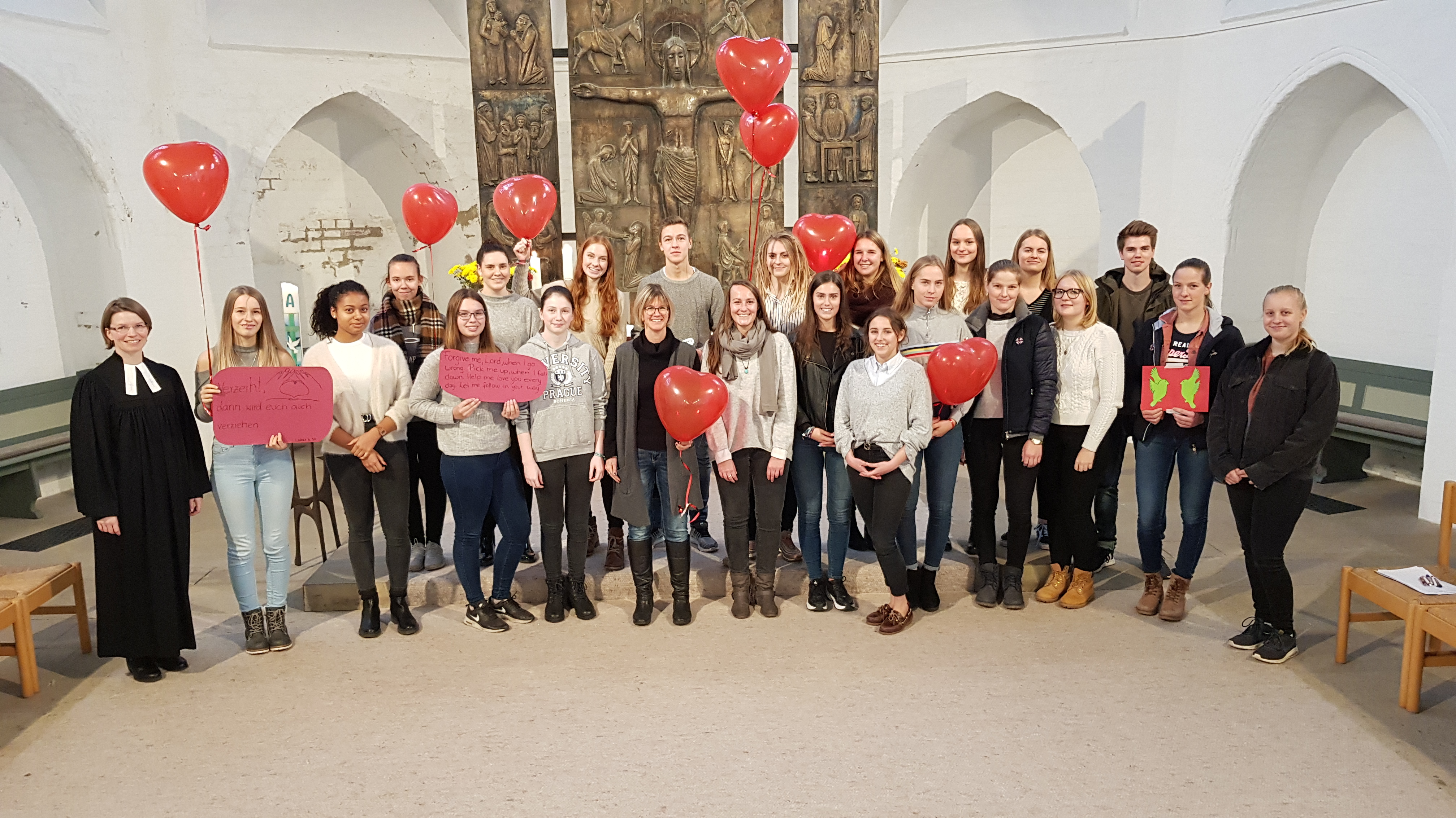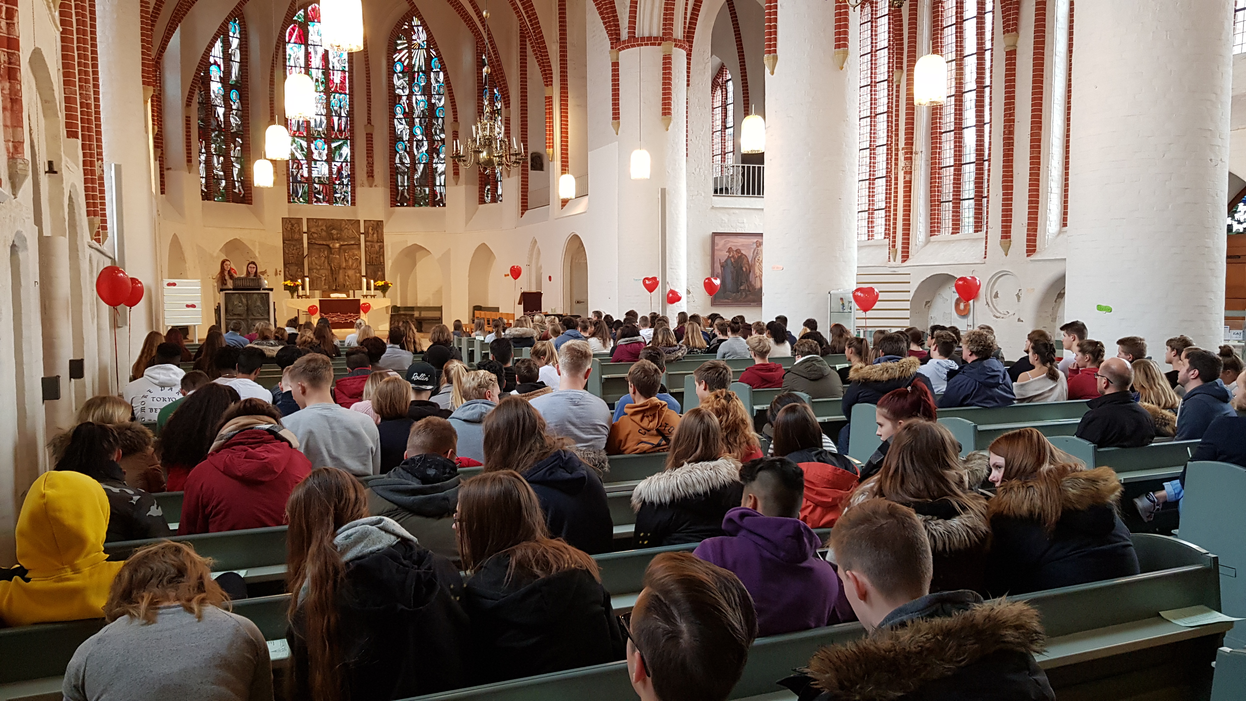 Winsen einen „modernen“ Gottesdienst, anlässlich des Buß- und Bettages von Schülerinnen und Schüler für Schülerinnen und Schüler. Dabei lag die gesamte Planung und Durchführung in der Verantwortung der Schülerinnen und Schüler. Das Thema ,,Es tut mir leid“, wurde eigenständig von den Schülerinnen und Schüler ausgewählt und lockte ca. 150 Mitschüler und Mitschülerinnen in die St. Marien Kirche in Winsen. Der Gottesdienst sollte dazu anregen, über eigene Taten und Worte nachzudenken und sich selbst zu reflektieren.