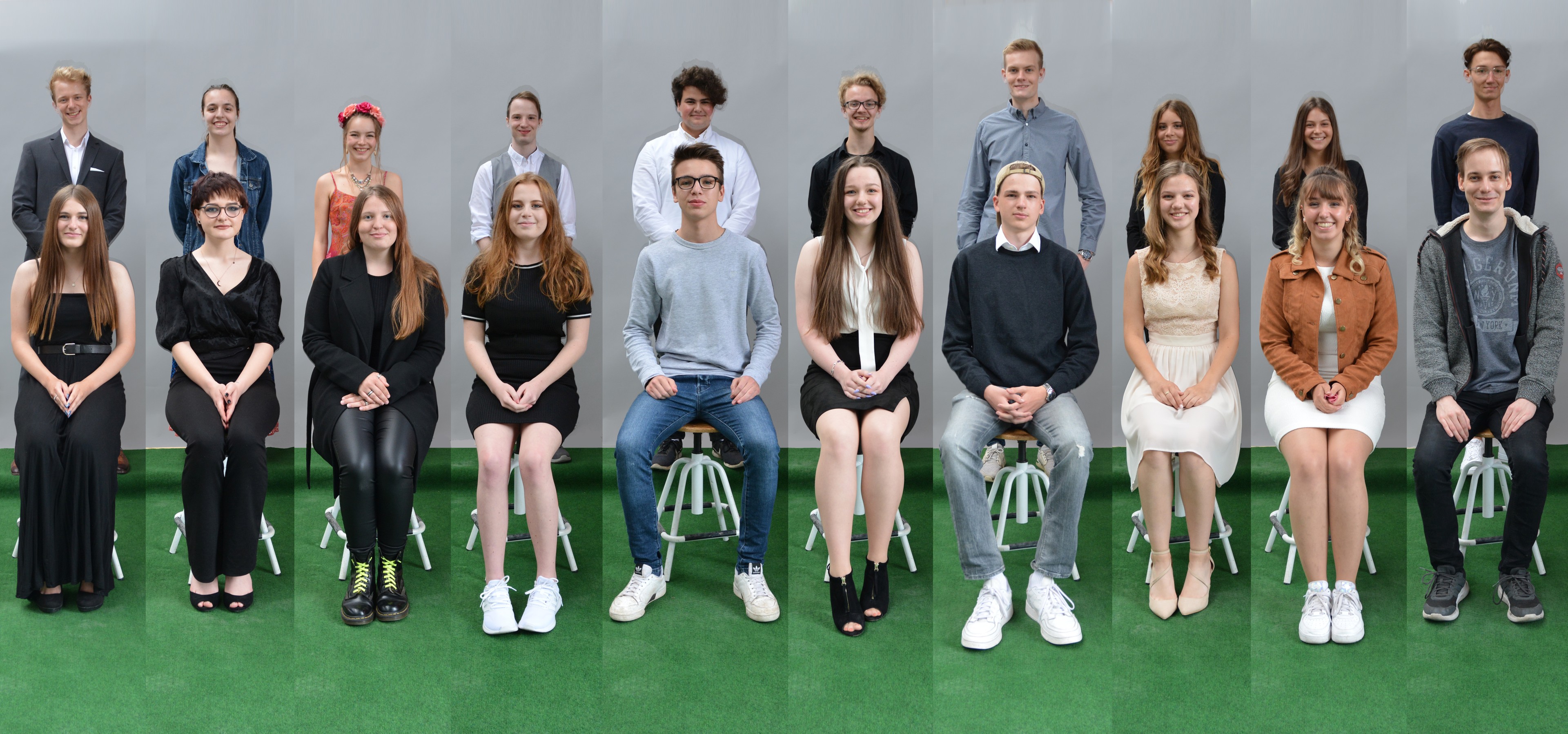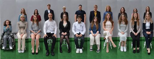 Die Tutoren vergaben die Zeugnismappen und Buchpreise an die jeweils Besten des Jahrgangs. Jonas Kühne und Romy Schwerin hielten als SchülervertreterIn launige Reden und jede Klasse wurde fotografiert.