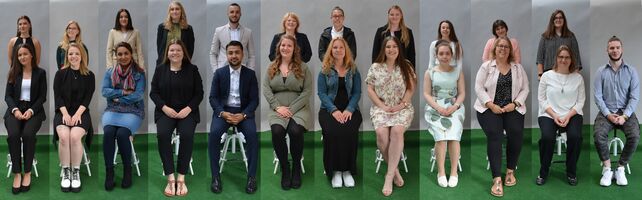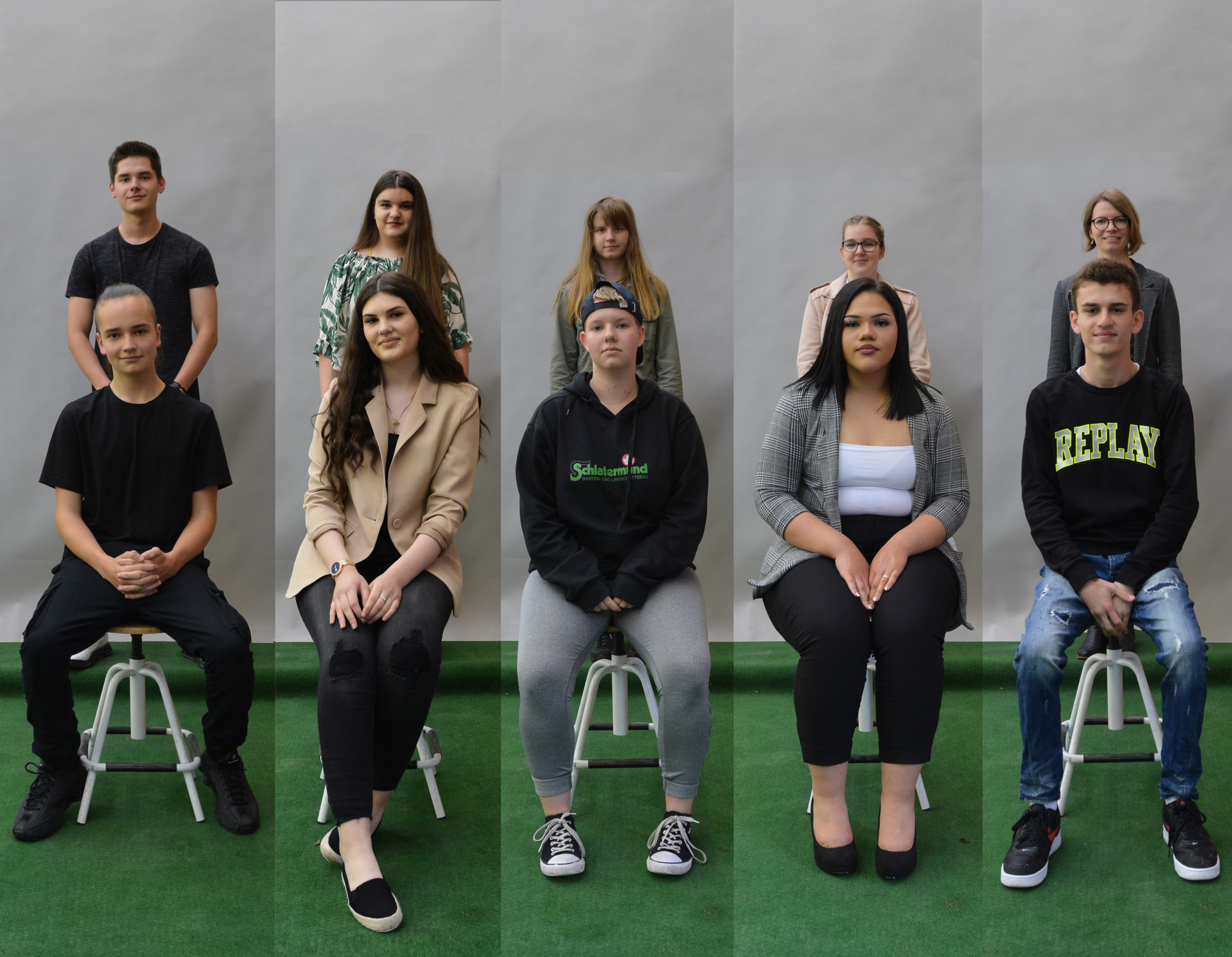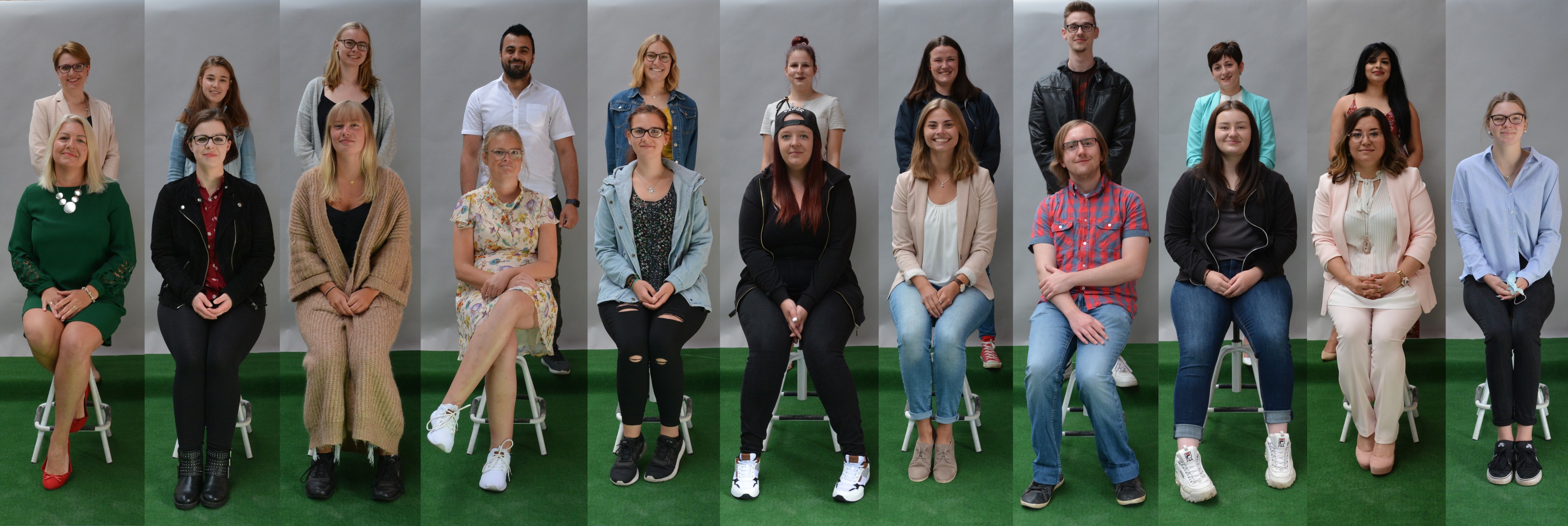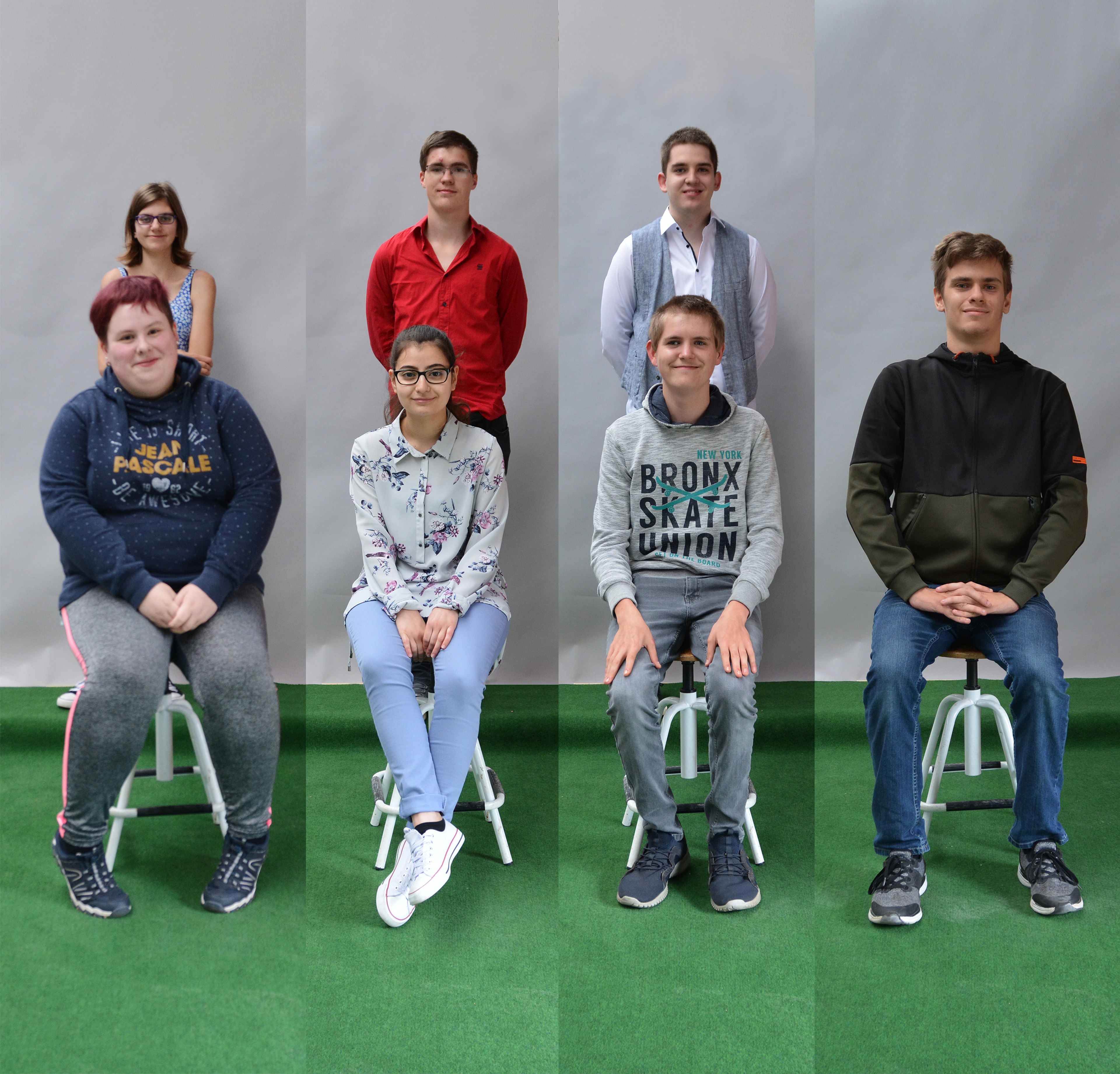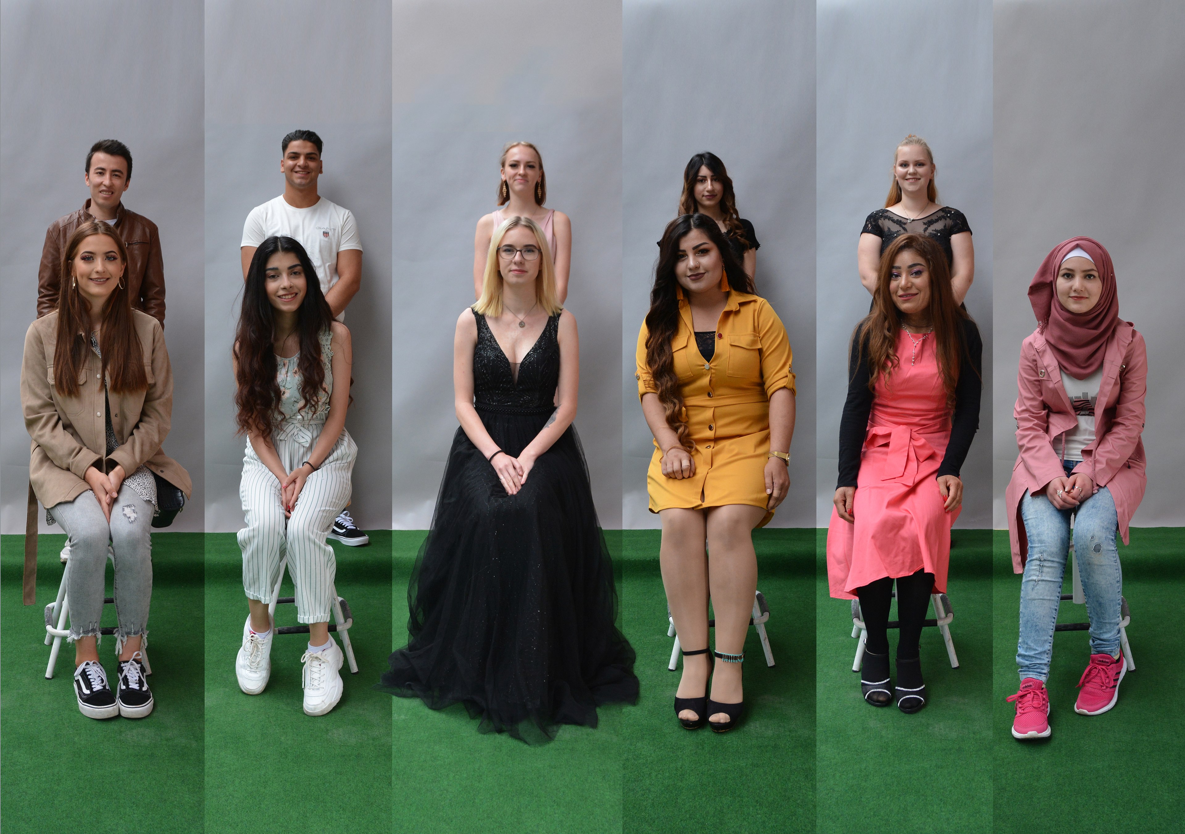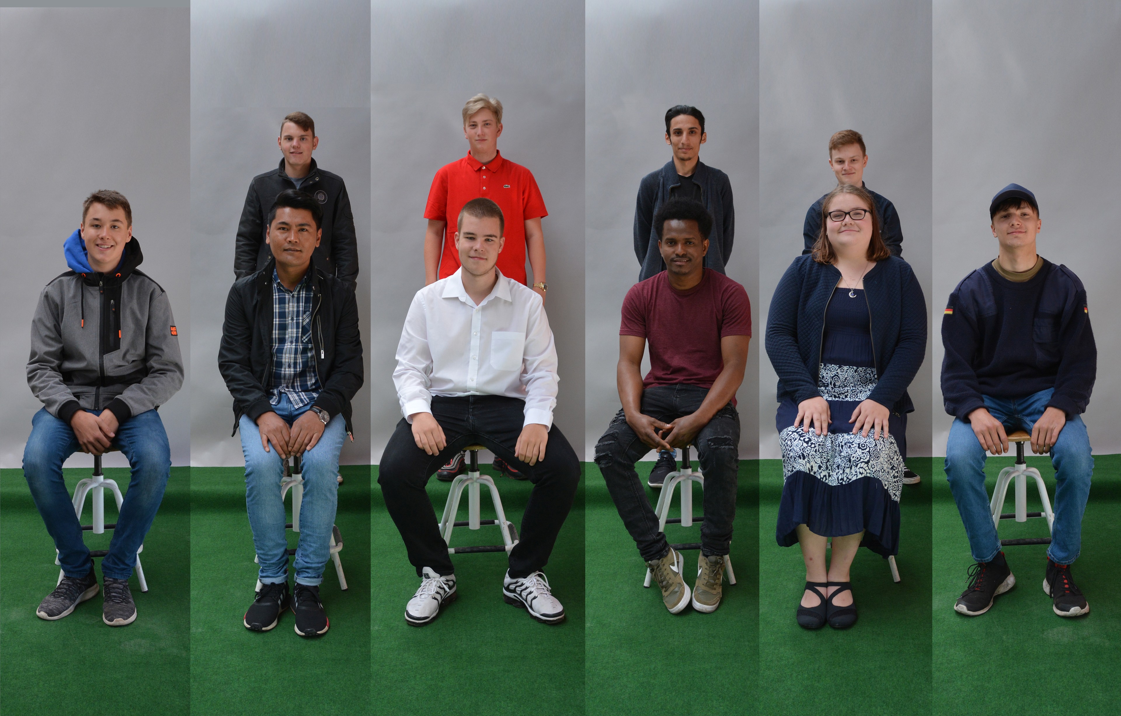 Dier unten abgebildeten Klassen zeigen von links: BVJ Farbtechnik/Bau (BVBF 17), BVJ Hauswirtschaft und Pflege (BVY 17), BVJ Sprachförderung (BRW 17 a/b).