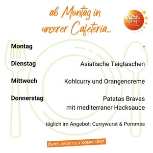 Das Team der Cafeteria besteht aus Marion Mahrt und Sandra Hirsch. Alle Mitarbeiterinnen sind langjährig bei der Schulcafeteria beschäftigt und kennen die Wünsche unserer Schülerinnen und Schüler daher besonders gut. Das Team bereitet die Speisen liebevoll zu und steht für vielerlei Sonderwünsche zur Verfügung. Die warme Mittagsversorgung wird abwechselnd vom Cafeteria-Team sowie von Schülerinnen und Schülern der Hauswirtschaftsklassen zubereitet. Das Motto lautet hier: Schüler/-innen kochen für Schüler/-innen