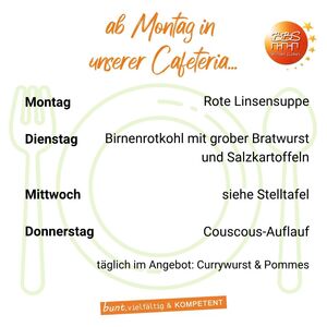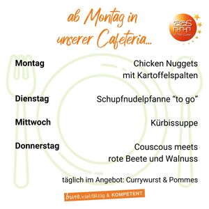Die Schulcafeteria wurde am 24. November 2009 anlässlich des 150-jährigen Schuljubiläums eingeweiht. Seither ist sie der Mittelpunkt unserer Schule. Das Cafeteria-Team hält für die Schulgemeinschaft ein breites Angebot an Speisen und Getränken vor. Die Räumlichkeiten laden aber auch einfach so zum Verweilen ein. Zudem finden hier viele schulische Veranstaltungen (z.B. Abschlussfeiern für Absolventen u.v.m.) statt.