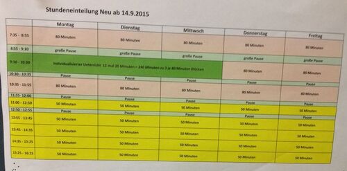 Donnerstag ist der COOL-Tag im Schulzentrum Ybbs. Anders als in der INDY-Phase erledigen hier die Schülerinnen und Schüler in der Zeit von 7:35 Uhr bis 12:00 Uhr vorgegebene COOL-Arbeitsaufträge. Während dieser Zeit stehen die Lehrer und Lehrerinnen den Schülerinnen und Schüler für Rücksprachen zur Verfügung. Außerdem finden an dem COOL-Tag Coaching-Gespräche, Mitarbeitsüberprüfungen und individuelle Lehrer-Schülergespräche statt. Aufgefallen ist uns dabei, dass die Schülerinnen und Schüler sehr verantwortungsvoll mit der Lern- und Arbeitszeit umgehen. Sie kommen selbstständig auf die Lehrerinnen und Lehrer zu um z. B. eine kleine Prüfung zu ihren Arbeitsaufträgen abzulegen. Am Nachmittag haben wir noch an der Teamsitzung des COOL-Kollegiums teilgenommen.