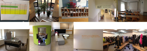 Beim Rundgang durch die Schule sind uns nicht wenige Unterschiede zu unserer Schule aufgefallen, so tragen beispielsweise alle Schülerinnen und Schuler sowie Lehrerinnen und Lehrer in der Schule Hausschuhe. Die Schülerinnen und Schüler können viele individuelle Arbeitsplätze, bequeme Sitzgelegenheiten und WLAN nutzen. Pflanzen und liebevolle Dekoration sorgen zudem für eine sehr angenehme Atmosphäre.
